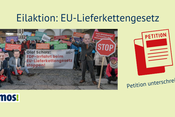 Die Initiative Lieferkettengesetz fordert zum Unterschreiben einer Petition auf: