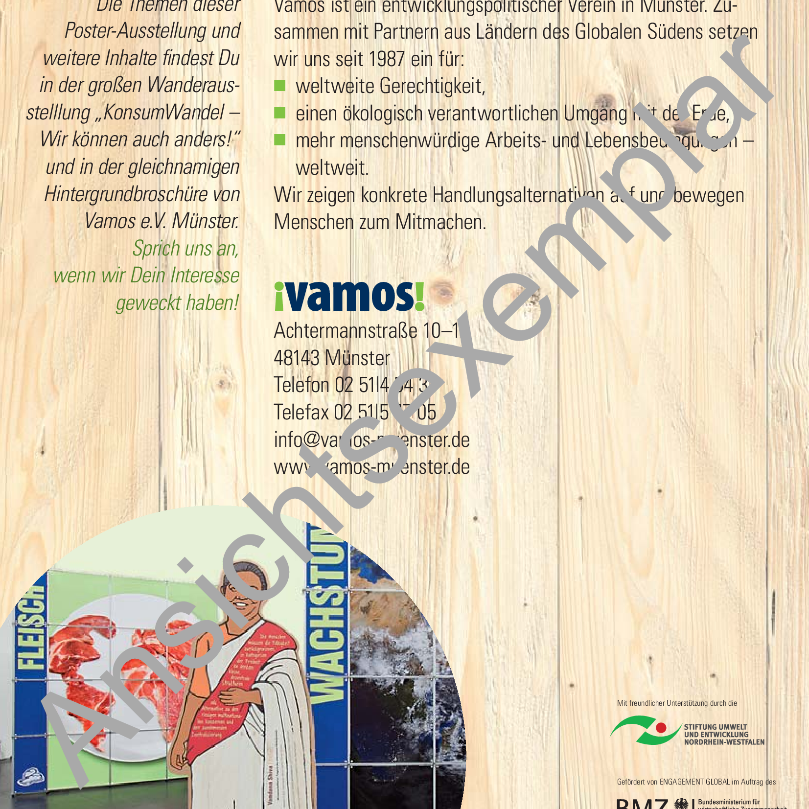 Kosten Ausstellung: Verleihkosten 70 € für zwei Wochen inkl. 5 Hintergrundbroschüren, (jede weitere Woche 25 Euro) zzgl. ggf. Versandkosten